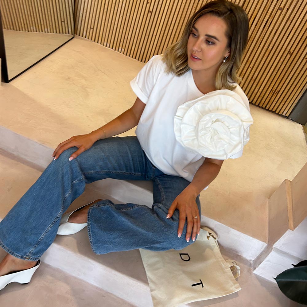 Our 100% organic cotton T is proudly made in Portugal, featuring a hand-crafted rose detail made locally in Ireland. Inspired by my love for a Classic White T, I wanted to elevate the everyday essential with a subtle statement piece & I’m so happy with the final result.